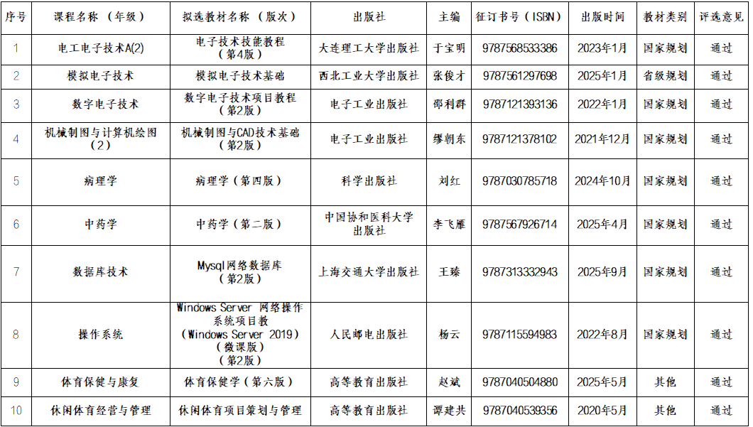 本次教材选用历经教研室初选、院部审查、学院教材建设指导委员会审议三级审核流程,现将2025-2026学年第二学期教材选用结果予以公示(详见附件)。